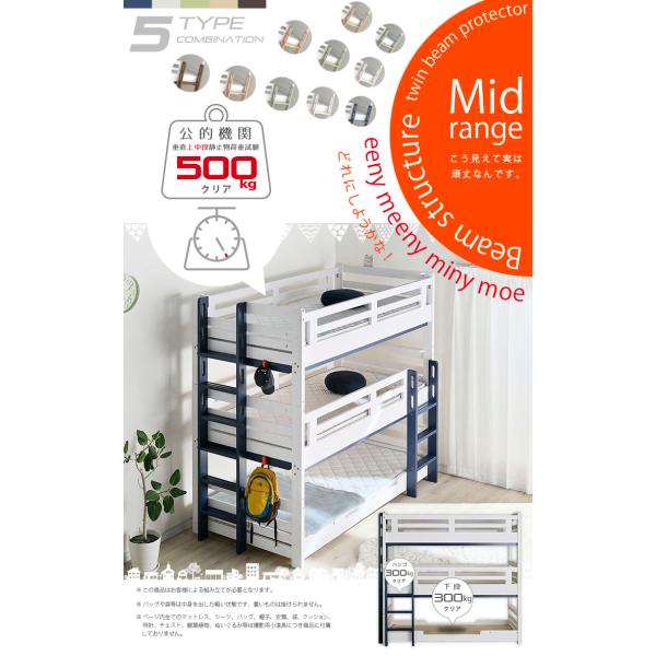 三段ベッド 3段ベッド 大人用 子供用 耐震設計 頑丈 安心 安全 社員宿舎 500kg 耐荷重 イーニー 3段ベッド