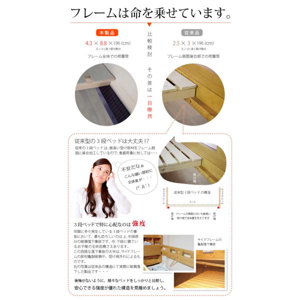 送料無料 耐震 特許構造 高機能性 三段ベッド 3人用