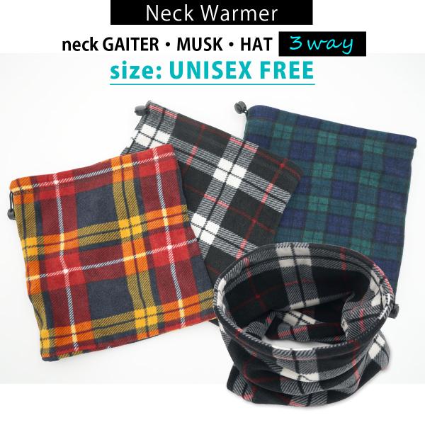 ネックウォーマー レディース メンズ タータンチェック 防寒 3WAY 男女兼用 スポーツ バイク 自転車 通勤 通学 暖かい 防寒 防風 ネックガード