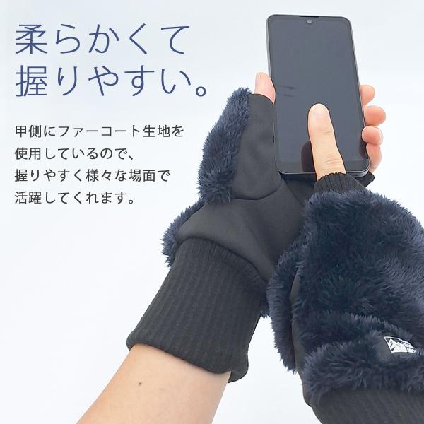 肌触りがよく保温性も高い表地と裏地のボア。カフス部分と指本はリブニットで冷気を近づけません。フリーサイズなのでレイヤードとしてもお使いいただけます。日常使いからアウトドア、寒い日のPC作業や倉庫内の軽作業にも。