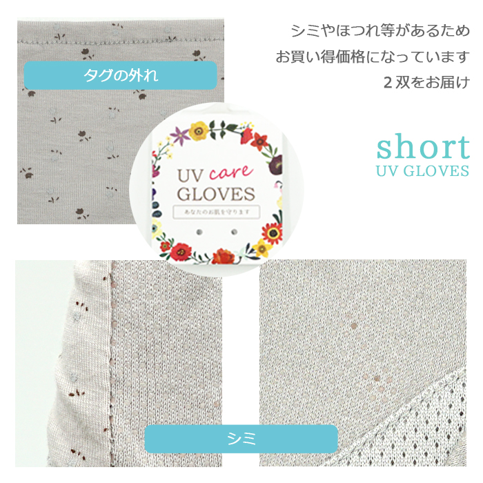 2双セットでお届けのUVカット手袋です。タグの外れ、ほつれ、シミなどがある訳あり品になります。