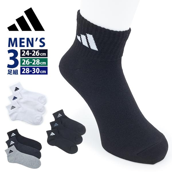 アディダス ソックス 靴下 メンズ 24~30cm adidas 3足組 消臭 ショート 破れにくい ロゴ スポーツ ワイドヒール アウトドア