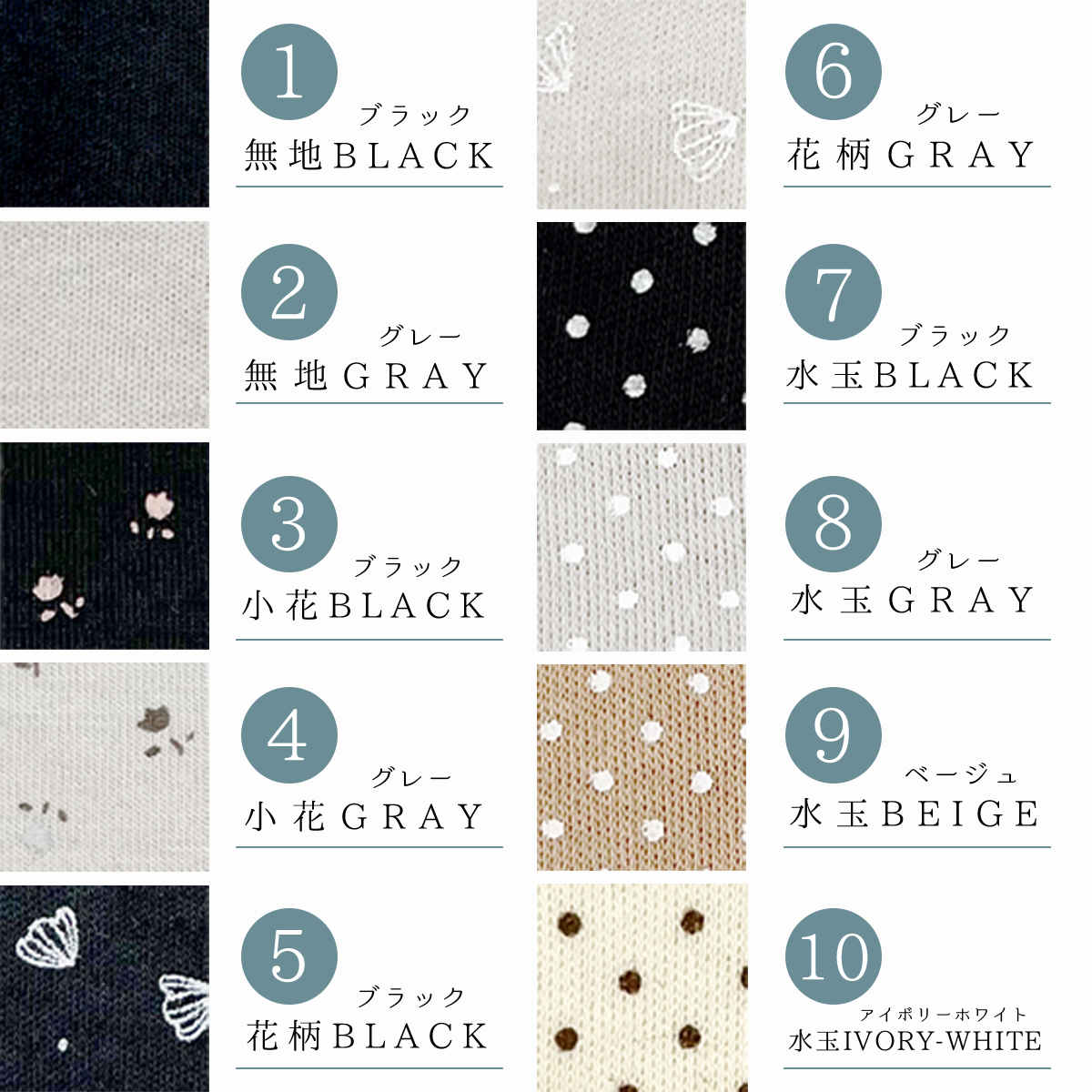・無地・花柄・水玉 色柄合わせて10種類