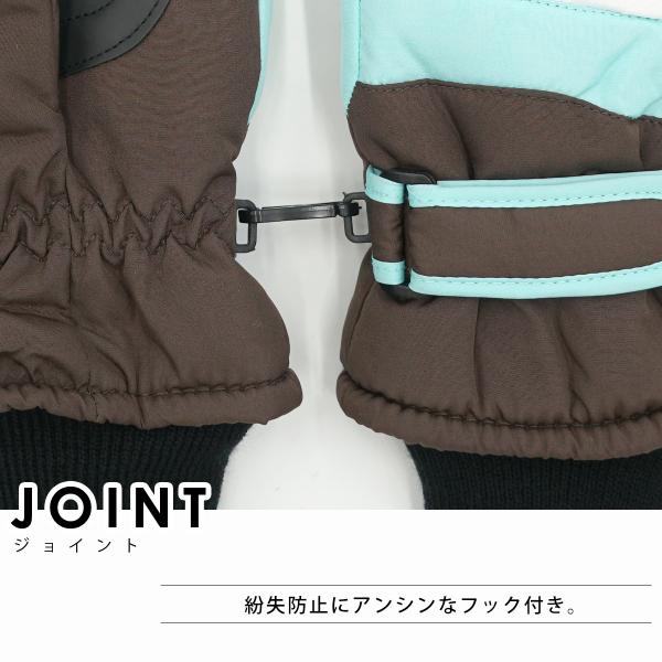 ・内側はフリースで暖か・はめぐちがニットで雪や冷気をシャットアウト!・手首のベルトで調節できます・手の平中央と親指内側部分が合成皮革で耐久性あり、滑りにくい・紛失防止の左右フック留めで安心