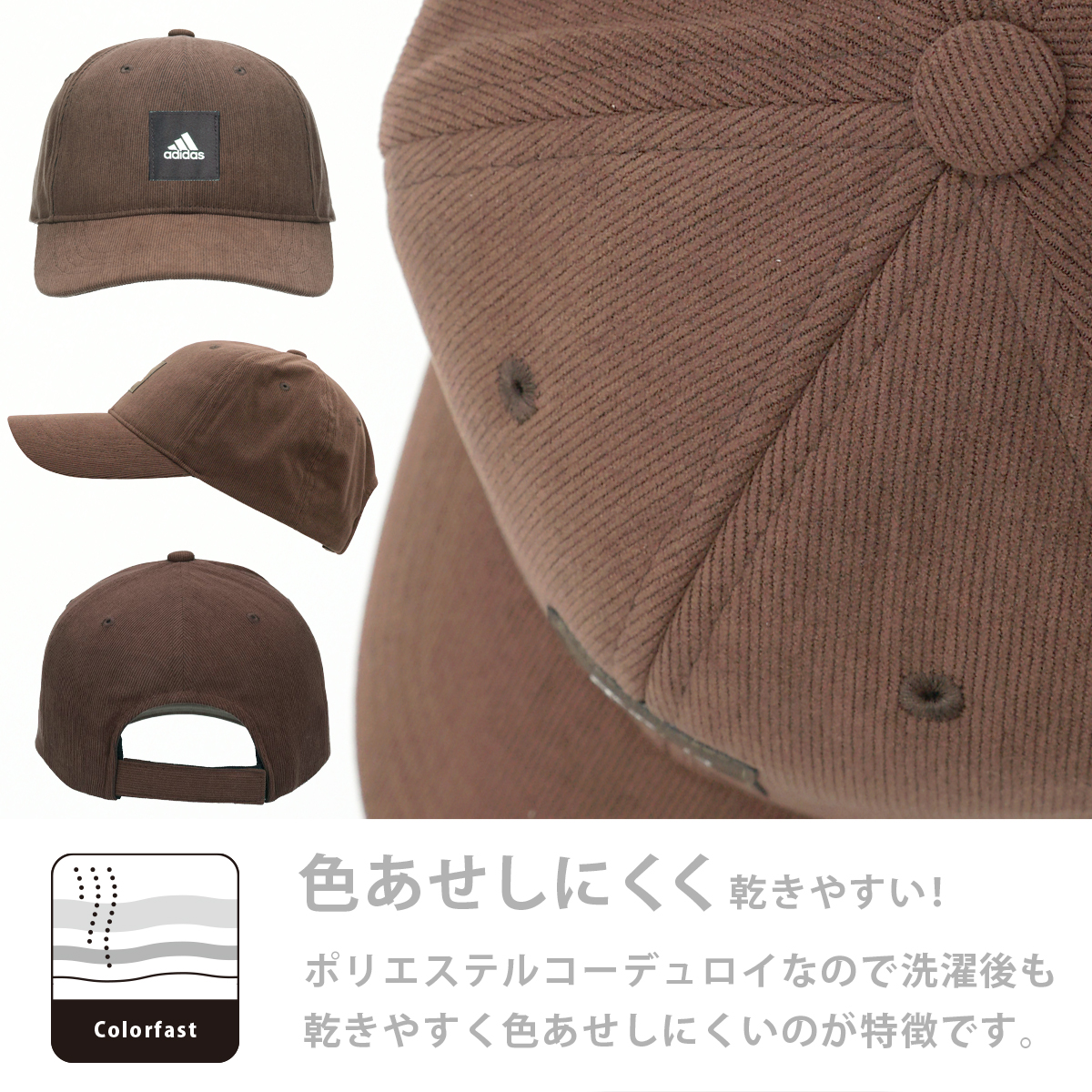 adidas アディダス 洗える キャップ 色あせない コーデュロイ レディース メンズ スポーツ アウトドア 吸汗速乾 乾きやすい