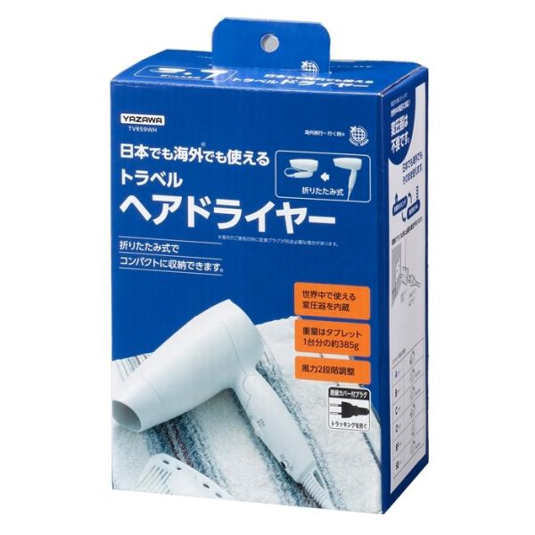 ドライヤー 海外対応 国内対応 旅行 YAZAWA トラベルヘアドライヤー ホワイト 100V - 120V / 220V - 240V 電圧切替 TVR59WH 爆買