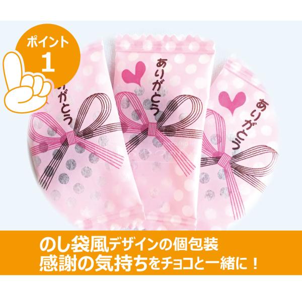 ◆ピンクののし袋風個包装に一口サイズのハート型チョコが一つ入っています。