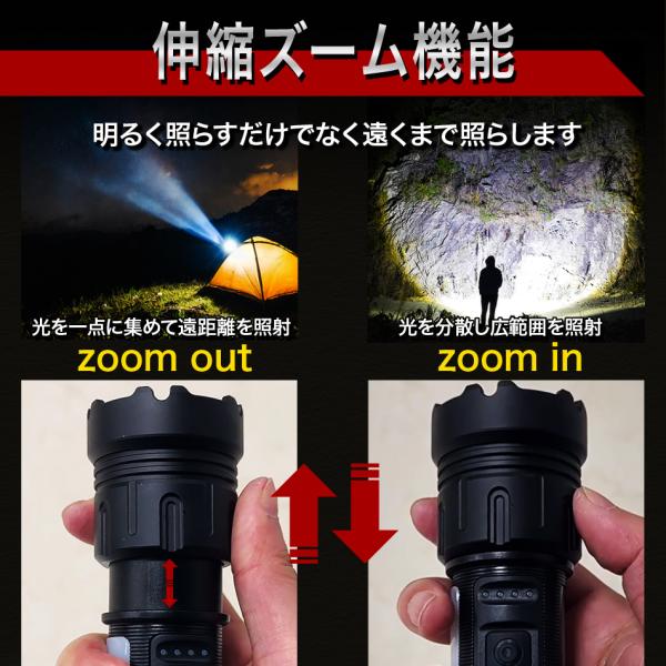 懐中電灯 防水 充電式 電池式 ハンディライト LEDライト 防水 Type-C白&赤色灯 7モード ズーム調整 COBライト