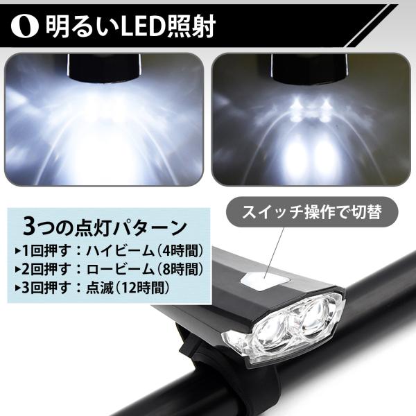 自転車 ライト LED 防水 USB充電式 マウンテンバイク ロードバイク クロスバイク 明るい サイクルライト 取り外し可能 人気 ハイビーム ロービーム 盗難防止