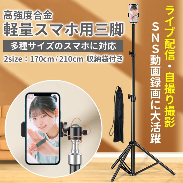 高強度合金/軽量スマホ用三脚/多種サイズのスマホに対応!