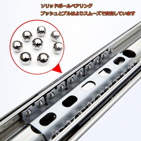 2本セット 重量用 スライドレール ロック付 ボール伸縮式 引き出しスライドレール 完全スライド ベアリング 横付け ハイエース使用