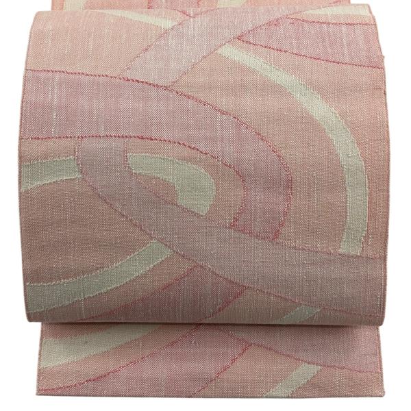 名古屋帯 優品 八寸名古屋帯 松葉仕立て 幾何学 ピンク 正絹 中古