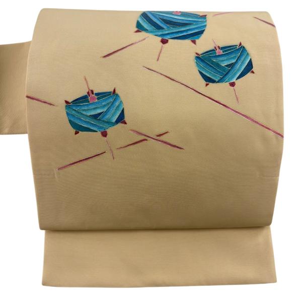 美品 名古屋帯 優品 糸巻き 金彩 ベージュ 正絹 中古