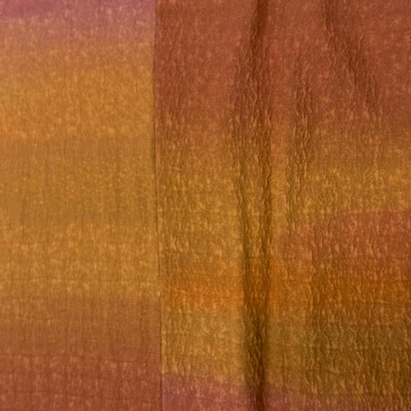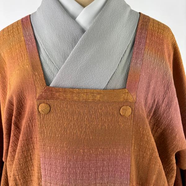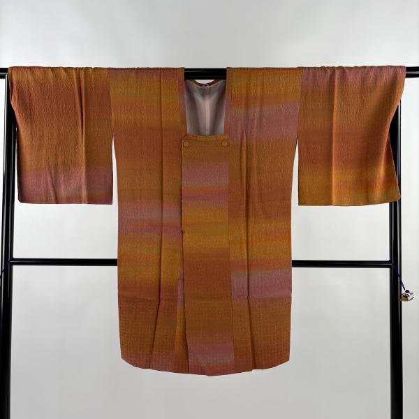 美品 道行 身丈99.5cm 裄丈68cm L 和装コート 角衿 格子 幾何学 ぼかし オレンジ 正絹 名品 中古