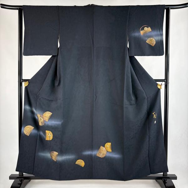 付下げ 身丈159cm 裄丈62.5cm S 袷 一蔵コレクション 落款あり 櫛 地紋 螺鈿 金銀彩 紺色 正絹 秀品 中古