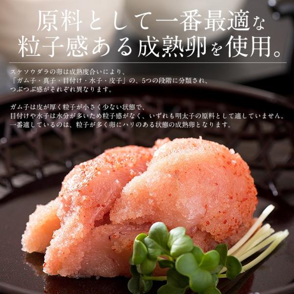 【原材料】助宗たらの卵(ロシア又はアメリカ産)、食塩、発酵調味料、魚醤、唐辛子、調味料(アミノ酸等)、ソルビトール、トレハロース、酒精、酸化防止剤(ビタミンC)、酵素、ナイアシン、香辛料、甘味料(ステビア)、発色剤(亜硫酸Na)