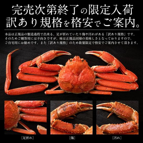 本品は正規品の製造過程で出来る、足が折れていたり傷や汚れがある「訳あり規格」です。そのためご贈答用には不向きですが、味は正規品同様の美味しさとなっておりますのでご自宅用にお勧めです。また「訳あり規格」のため数量限定で格安でご案内させて頂きます。