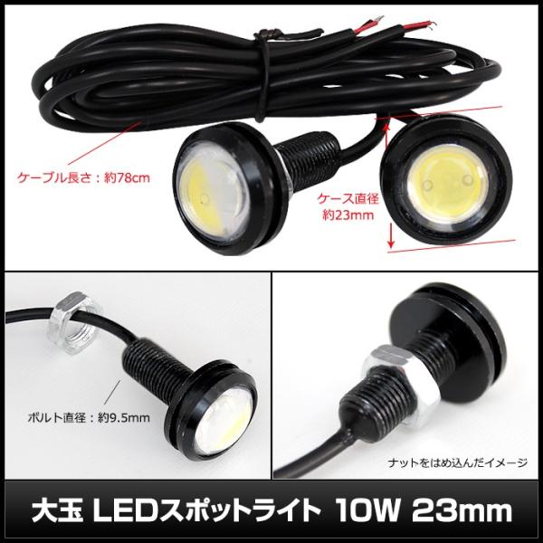 LED スポットライト イーグルアイ 大玉 防水 12V 23mm 黒色ソケット 2個