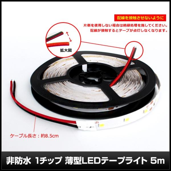 LEDテープライト 非防水 12V 500cm 薄型 1チップ 白ベース 両端子