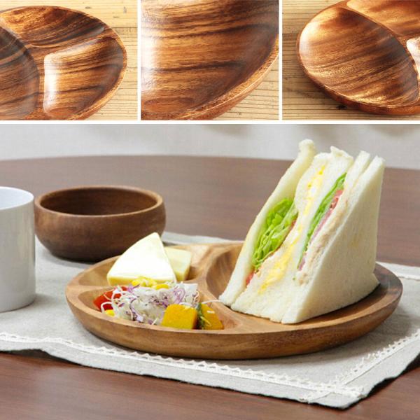 アカシア食器 ラウンドトレー仕切り付 ランチ プレート 木製食器 木製プレート アカシア 食器 トレー トレイ 木製 北欧 おしゃれ カフェ かわいい ナチュラル
