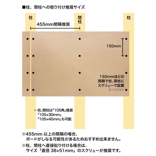 ボードを柱や間柱に貼り付けていただければ、