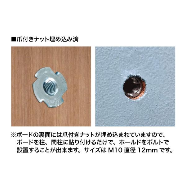 壁裏でのナット脱落を防止する爪付きナットの接着固定加工も施しています。