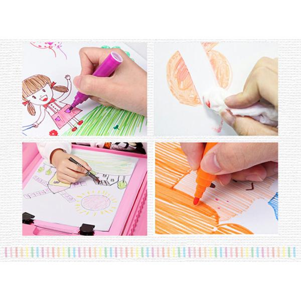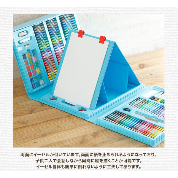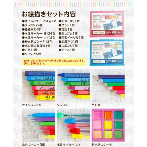 お絵描きセット(ピンク・ブルー) 176色 色鉛筆 水性色鉛筆 クレヨン 固形水彩 油性色鉛筆 カラーサインペン オイルパステル 画板付き 収納ケース付き