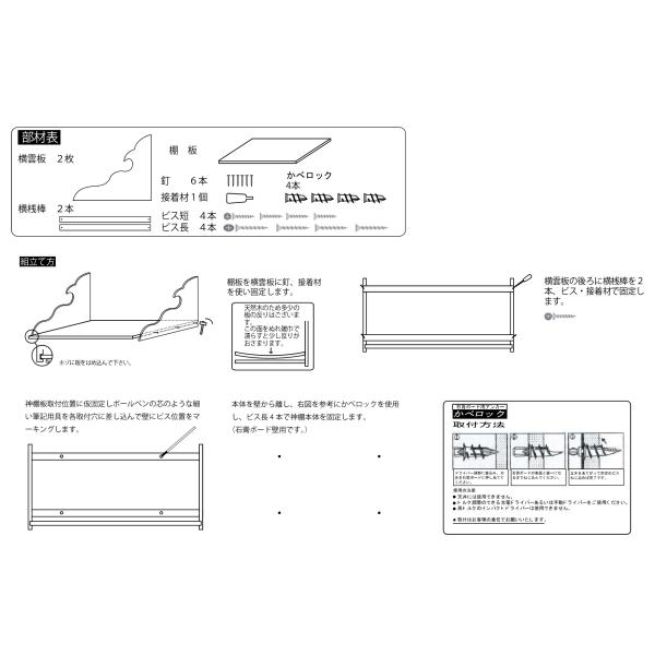 神棚 棚板 【小サイズ 日本製】 幅約46cm 雲形の横板が荘厳な神棚板 木製壁/石膏ボードも対応 大和神棚板 桧 ひのき 簡単組立 設置台 乗せる台 神棚の里