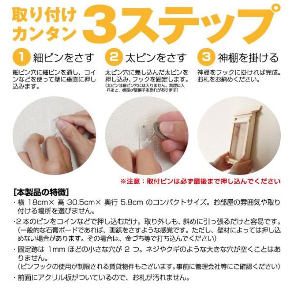 神棚 壁掛け 掛ける 神棚 簡易 取り付け ピン付き