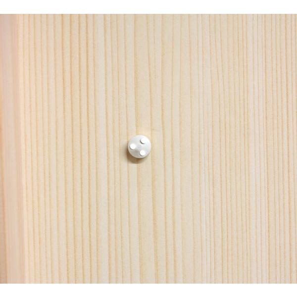 石膏ボードの壁には2個のピンを同梱されている釘6本をコインなどで押し込むだけ。(木部の壁の場合はトンカチを使用して下さい。