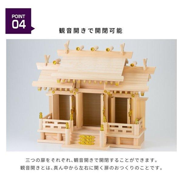 お神札は底部の板をスライドして出し入れする仕様で、前面扉は全て観音開き可能。