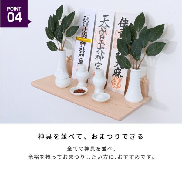 純国産ひのきを使用しており、奥行きもあるため神具一式をお祀りすることが可能。
