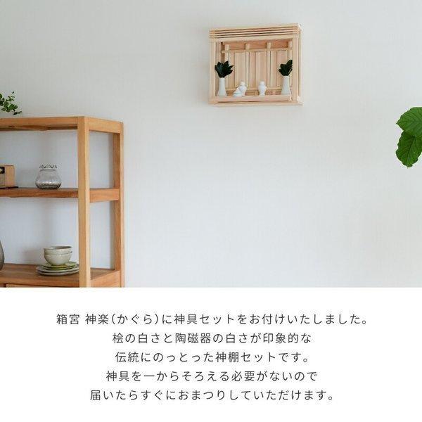 神棚 壁掛け モダン 引出し付き セット 箱宮 神楽 シンプル おしゃれ 神棚セット 国産桧 神具付き セット お札立て 設置台 棚板 不要 簡単設置 神具セット 爆買