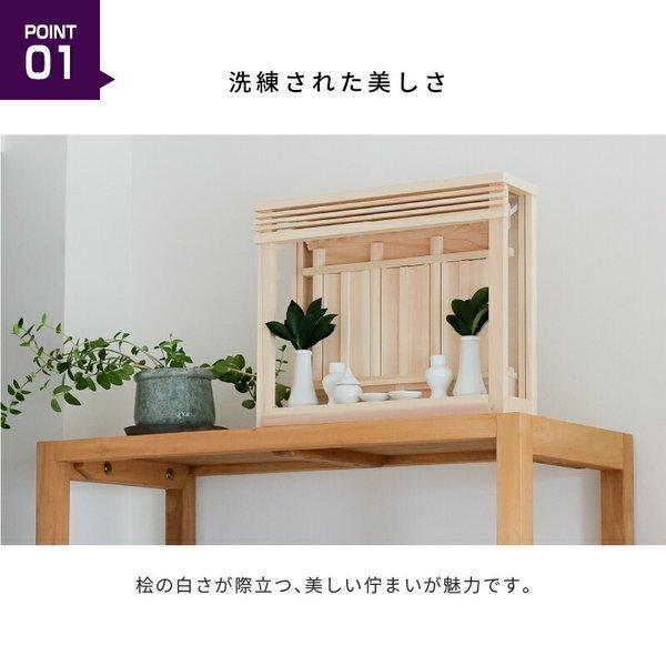 さらに置いてのお祀りも壁掛けもできるため、ご家庭でのお祀りの変化に柔軟に対応できます。
