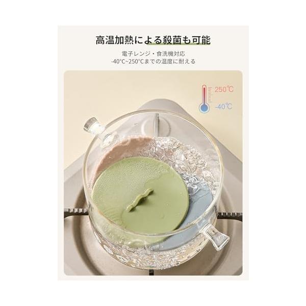 耐寒性と耐熱性 シリコン製の蓋は-40*Cから250*Cまでの高温に耐えます。 加熱して沸騰させる使用する場合、カップ内の液体の飛び散りや沸騰を防ぐことができます。 冷蔵庫で使用すると食品の鮮度を保ちます。