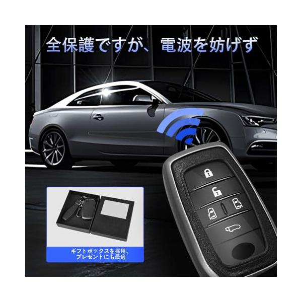 トヨタ専用 このキーケースはトヨタのキーに基づいて設計されたので、形と同じのトヨタ鍵にも対応でき、ぴったりします。詳細は弊店の写真をご覧ください。鍵を確認して、ご買い求めください。 優れた素材 このキーケースは正面がTPUを採用し、防水、防塵、汚れつけことが心配しなくて、ボタンを守ります。裏面やハンドストラップは職人洗練された本革を採用し、優れた耐久性があり、手触りもいいです。フレームは亜鉛合金で、硬くて抜群な耐衝撃性があり、それに防錆性にも優れています。 高級感のデザイン 本革とシンプルな設計はレトロ調があり、亜鉛合金の重量感と組合せ、高級感が演出します。大人の雰囲気が溢れて、キーホルダーを加えておしゃれなスタイルもあり、メンズの魅力が表れています。 電波を妨げず キーケースを入れて、キーの電波が弱くならないので、取り外しなくてそのままキーを使用しできます。TPUの特徴で、指紋つけず、ボタンがはっきりした見えます。 プレゼントにおすすめ 車の鍵を保護するキーケースで、高級感のギフトボックスの梱包を採用し、家族や友達、それにお取引先へのプレゼントにも最適です。