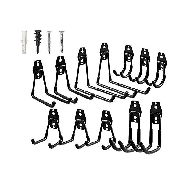 ガレージフック、12パックガレージ収納フックとハンガー、頑丈な壁掛けガレージオーガナイザー、はしご、自転車、ホースなどの道具収納 (黒)
