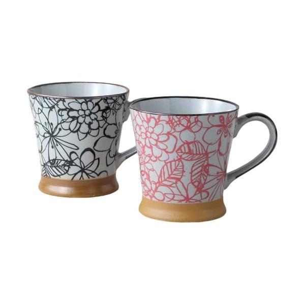 マグカップ 2個セット ペア フラワー ペアマグ Φ8.5*H8.9cm 280ml 美濃焼 日本製