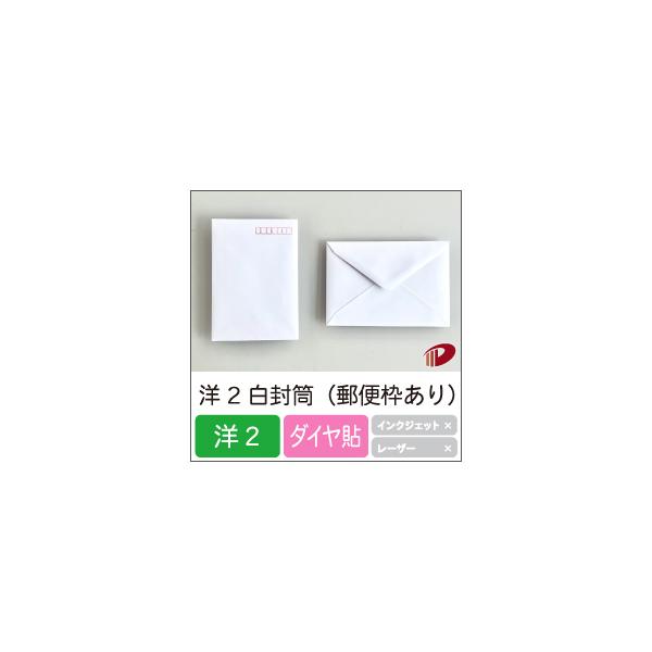 【ネコポス出荷】洋2白封筒(郵便枠あり) /50枚 洋2 白 封筒 案内状 招待状 挨拶状 ダイヤ貼り