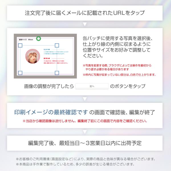 1個からオーダーOK!オリジナル缶バッチ 自分で作る缶バッジ(44mm・56mm)自由編集 写真 ペット 子ども かわいい 記念品 ノベルティ プレゼントに