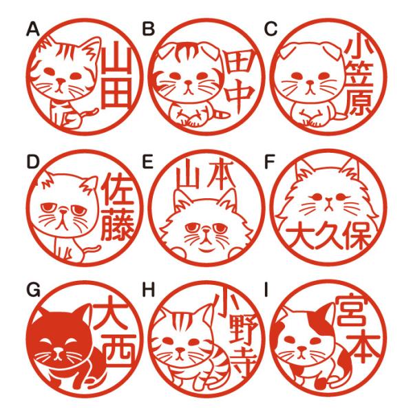 はんこ かわいい にゃんこのはんこ 印鑑 朱肉付き 名入れいたします 9種類の絵柄から選べる!