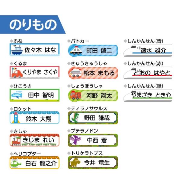 イラストは、12種類ののりもの・恐竜柄からお選びいただけます。