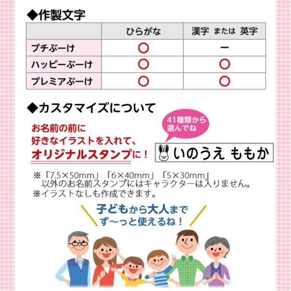 ※お名前の前のキャラをお選びいただくと「特大」「大」「中」にキャラが入ります。