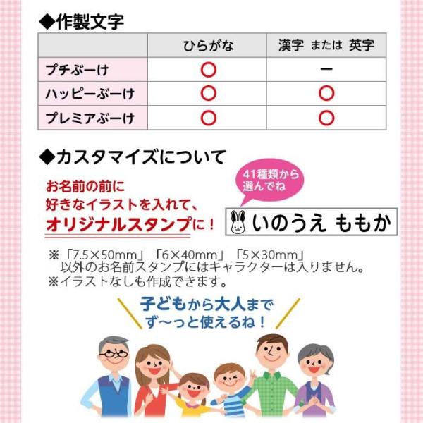 ※お名前の前のイラストをお選びいただくと、「大」「中」のスタンプにイラストが入ります。