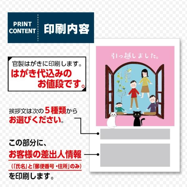 当店専属のクリエイターが描いたおしゃれでユニークなデザインの転居ハガキで、