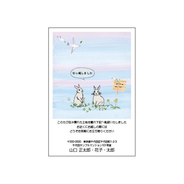 転居はがき 引っ越しはがき はがき代込 住所印刷あり 20枚 うさぎのつぶやき おしゃれ イラスト 送料無料