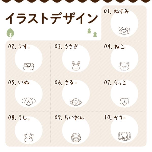 形は丸型、星型など全4種類、手書き文字の下に添えるかわいいイラストは全10種類から選べます。