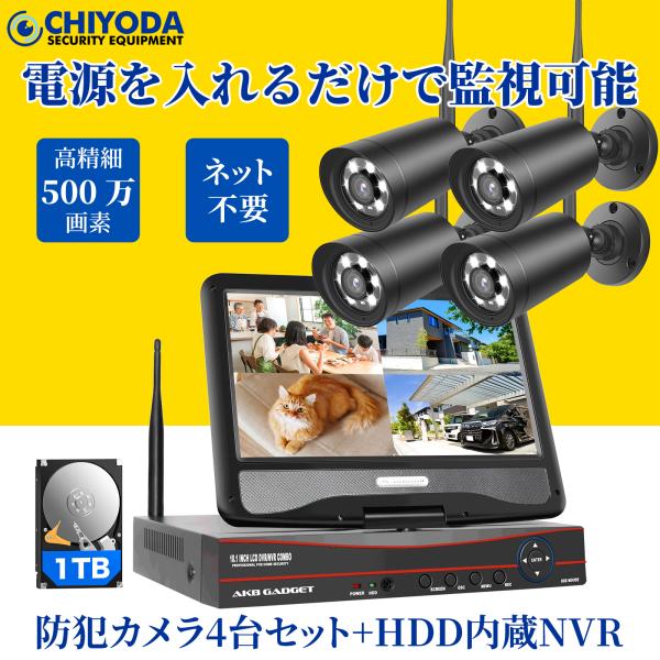 防犯カメラ 家庭用 ワイヤレス 屋外 モニター付き 双方向通話可 AI検知 HDD付き 業務用 防水 監視カメラ 1台セット 暗視撮影 常時録画 スマホ遠隔監視 500万