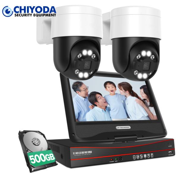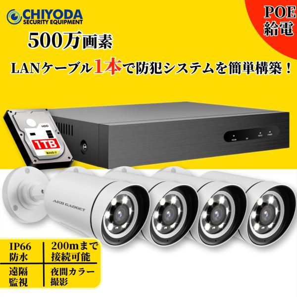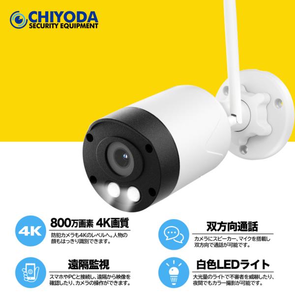 防犯カメラ 屋外 家庭用 wifi 事務用 高精細500万画素 LED防犯灯付き カラー撮影 赤外線暗視モード 4台セット PTZ機能 ネット環境不要 配線工事不要 HDD内蔵