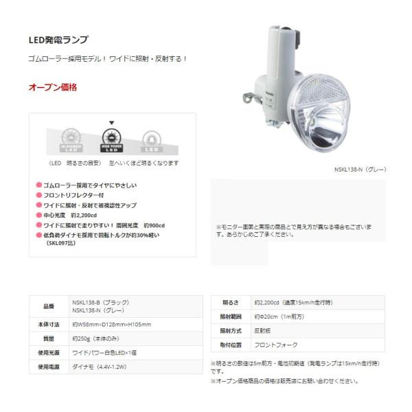 Panasonic NSKL138-N 自転車 ダイナモライト グレー LED 低負荷ゴムローラー(ヤ)のゆうパケットパフ